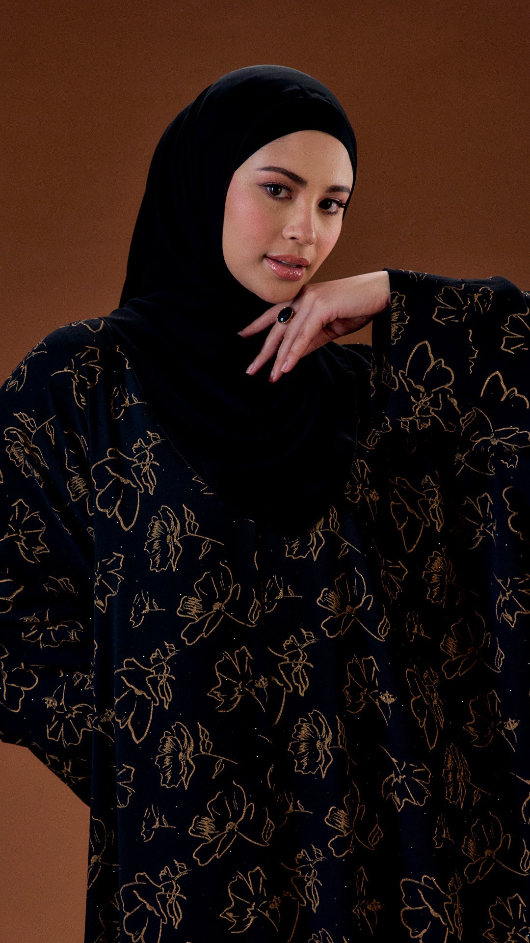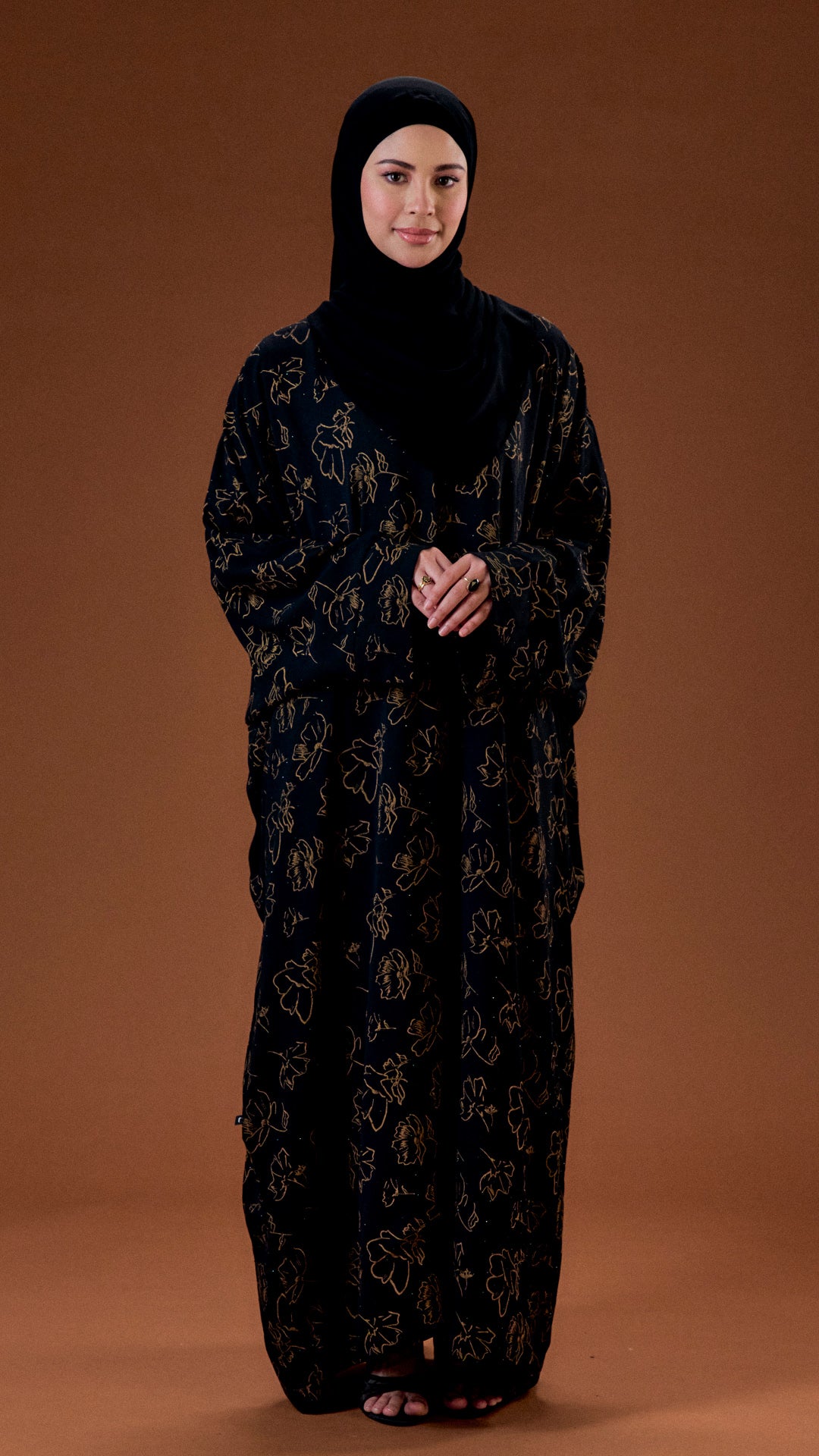 Experience the perfect blend of comfort and elegance with the Abra abaya, crafted from luxurious chiffon crepe. Its soft texture and full lining ensure a secure fit, while the delightful flower print adds a touch of charm. The batwing sleeves provide enhanced comfort, making this abaya an ideal choice for any occasion.