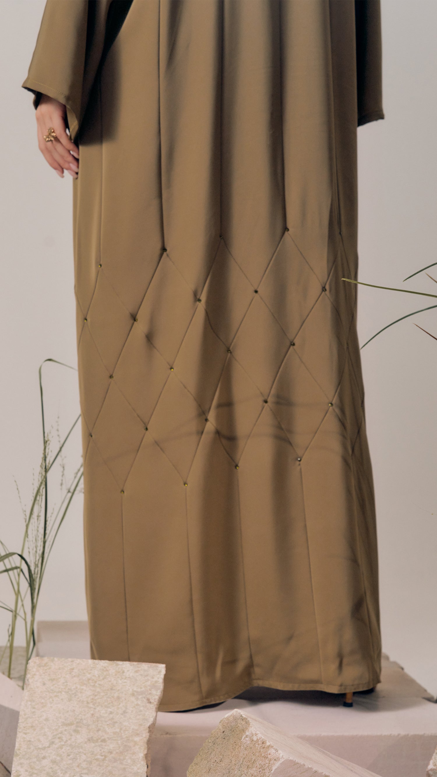 Abaya type: Front open style with snap buttons. To make it front closed style, we can join the front slit. Please add to cart the alteration fee: Open-Closed type