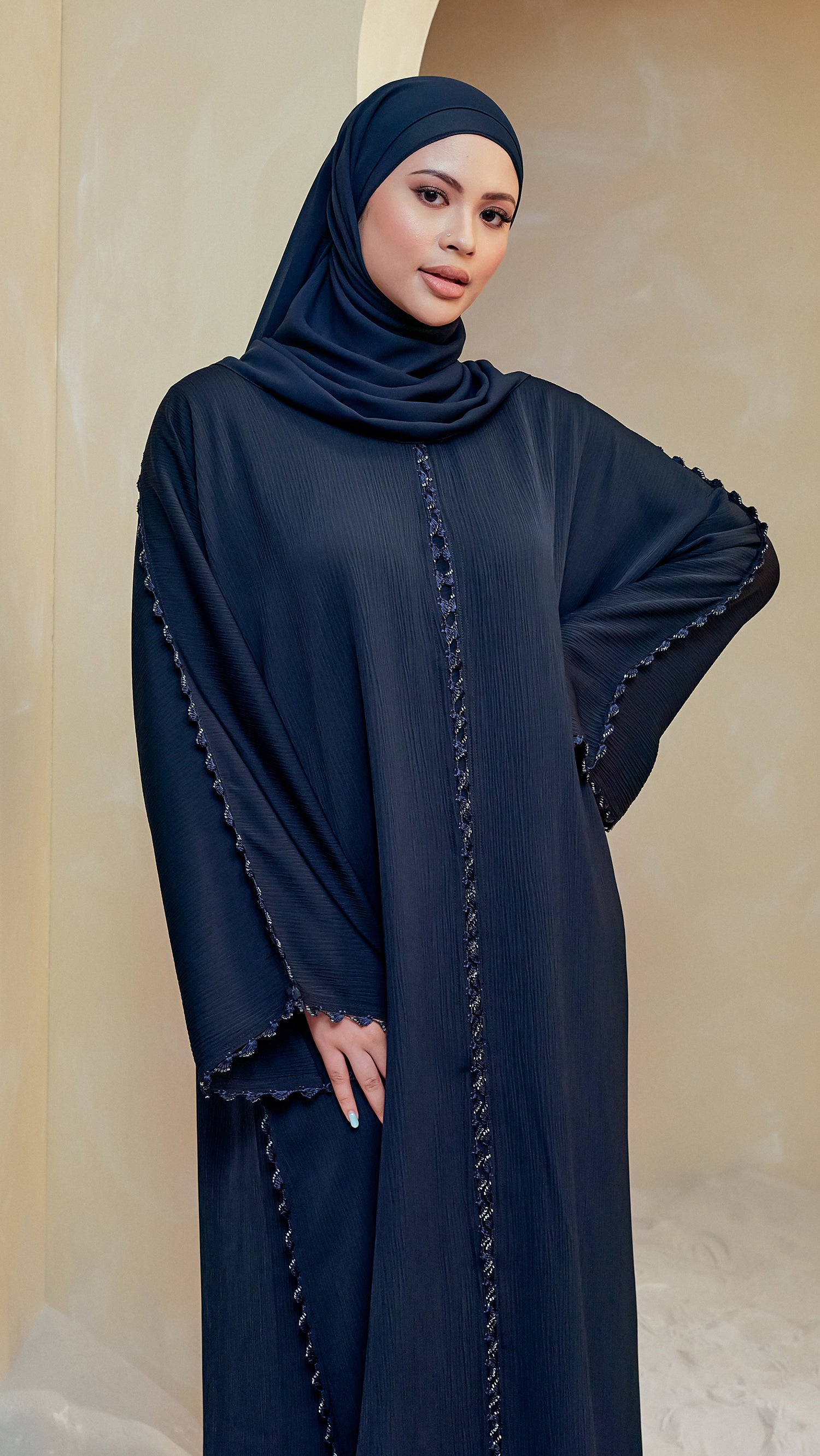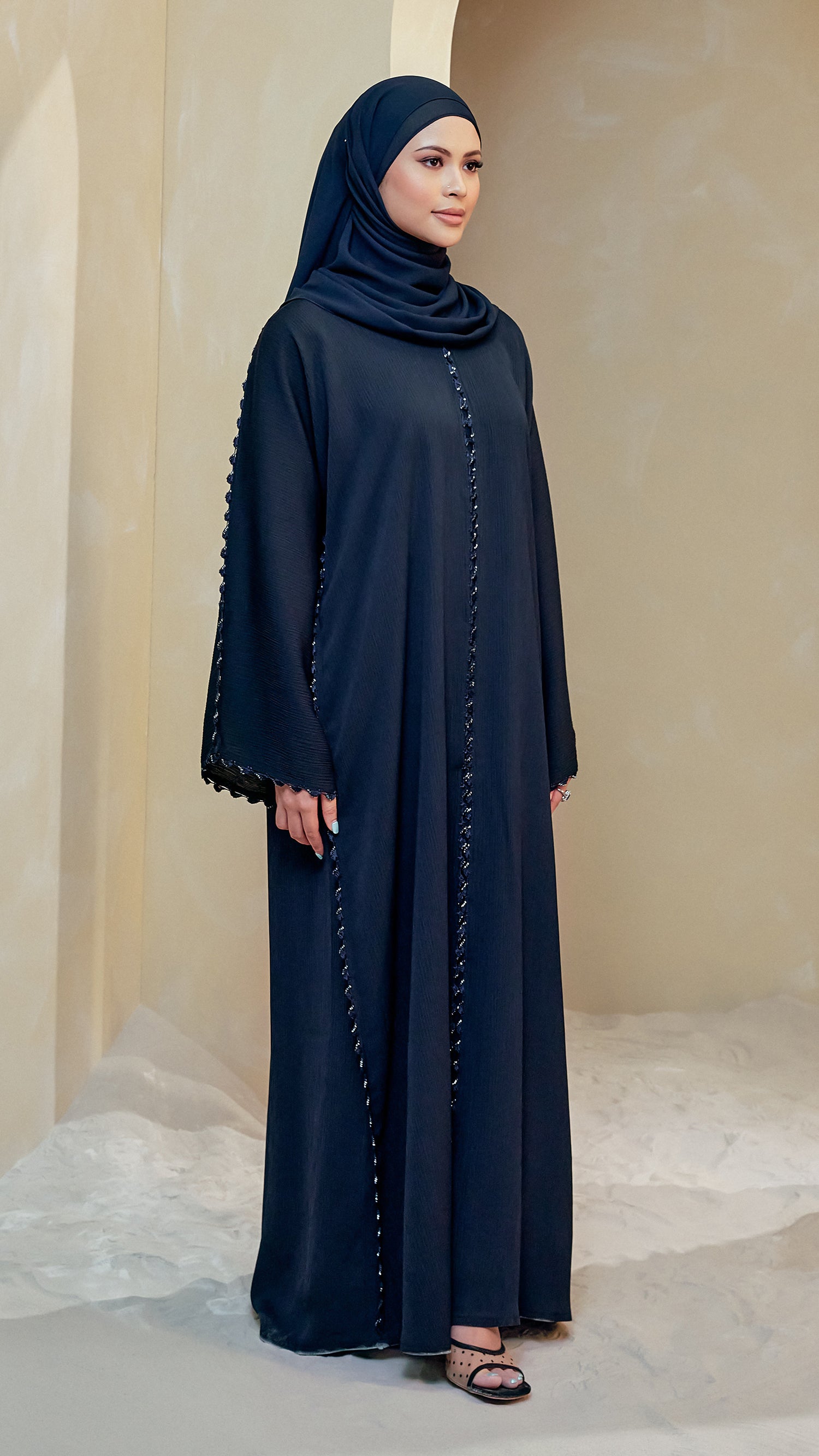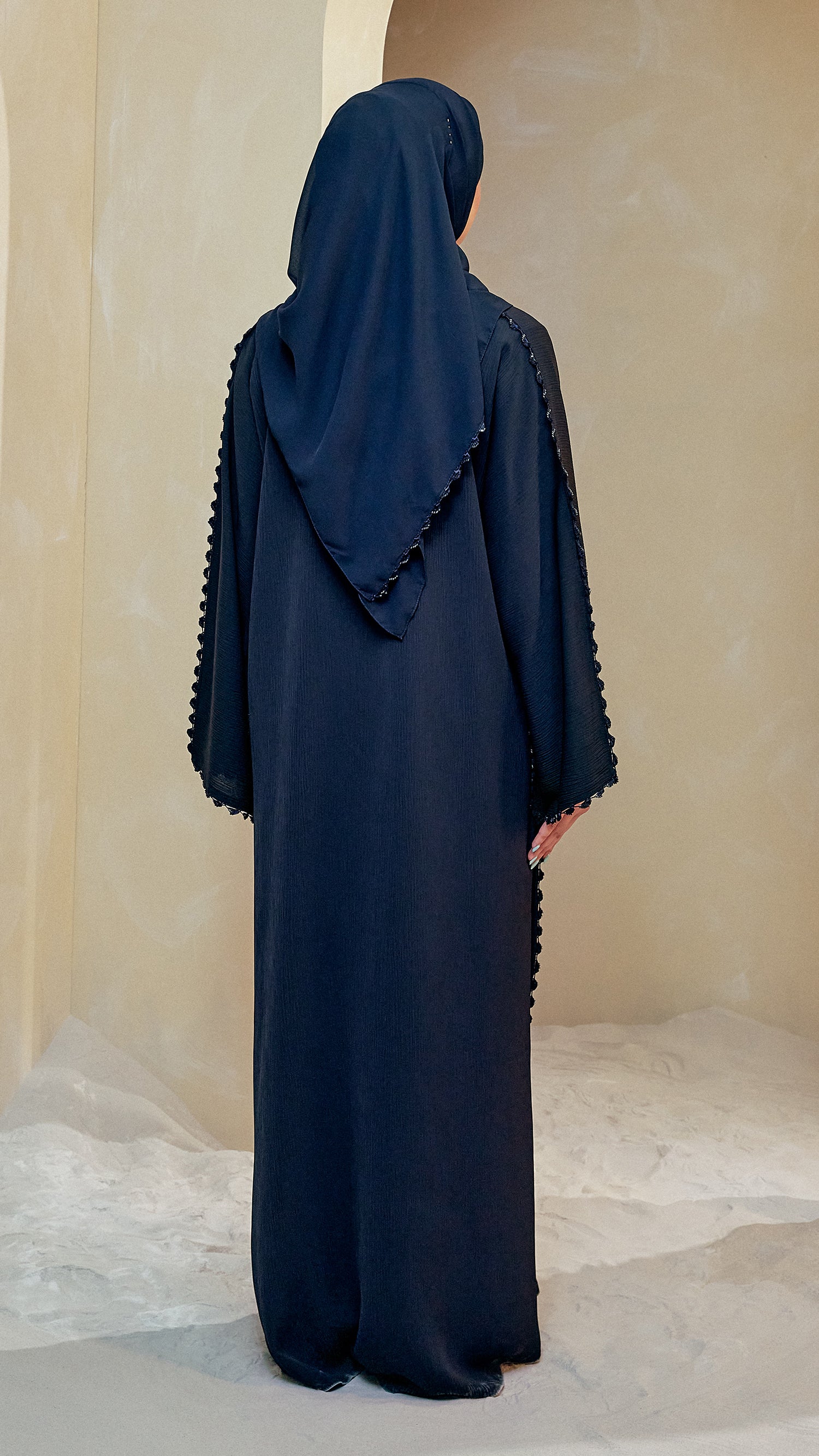 Notes: This abaya cannot be altered in terms of its body, front closure, or length due to its unique features and details.